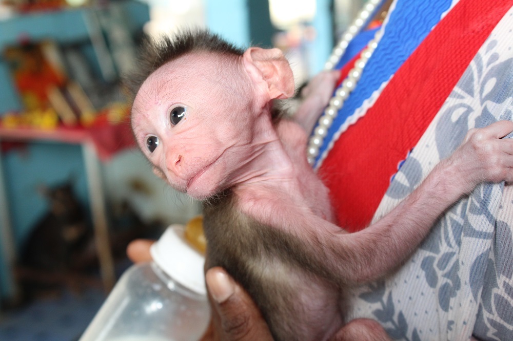 • The mother was simply nasty with us. She would bite and kick when anyone approached her. Pondi and Dharma were able to form some relationship, but not a close one. It clearly wasn't a good situation for either the baby, or her mother.