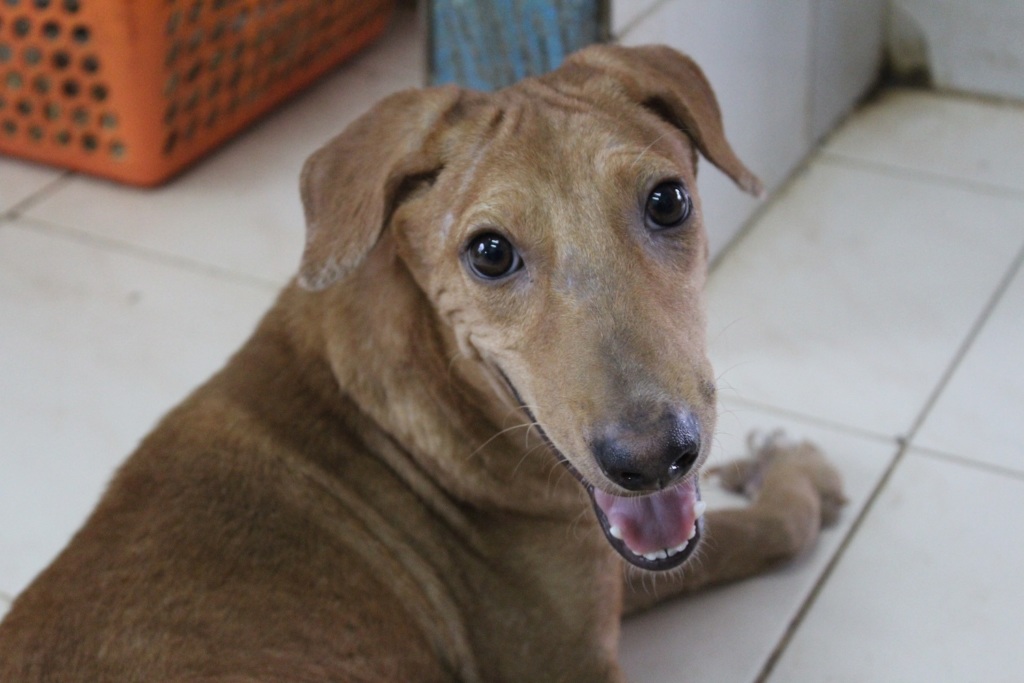 • We kept her for a month while treating her mange. She quickly settled into the Shelter and was happy. Vishwa found a really nice home for her in a nearby village. They had a six year old boy who adored her. Om Namah Shivaya.