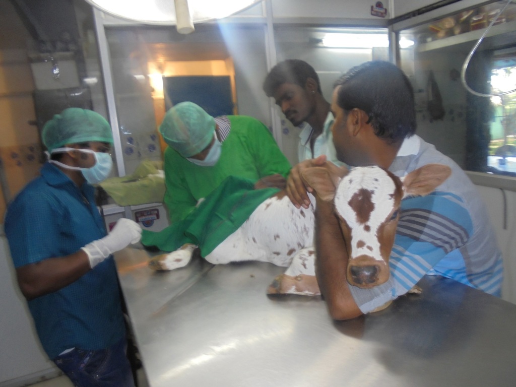 • Several months ago a young female colt was brought to the Shelter by people from a temple  50 kms away. The poor babe was only two months old. She had been hit by a two wheeler and her back leg was severely broken. She was in a lot of pain, so Dr. Heera immediately gave her a strong painkiller. Then she cleansed the wound, gave the colt antibiotics and prepared her to be operated on the following morning.