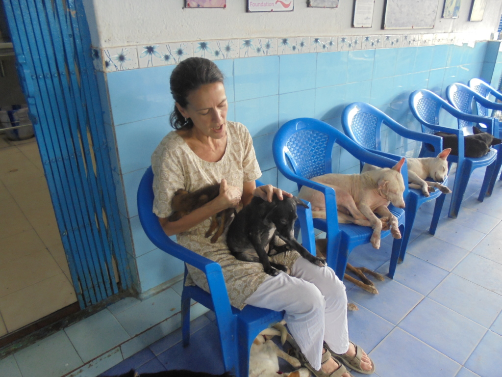 Finding homes for them, though, is a big problem and requires major, major effort. Vishwa has three students from the nearby college who go out up to 100kms looking for good homes…Then Vishwa goes to check the homes out. (About half are good.) The students can receive 500 rupees from us for each puppy placed…but they’re “deeply into it” and refuse to take any compensation other than reimbursement for their expenses. Our beloved Vishwa spends an incredible amount of time doing this. It’s not easy to find good homes. Sometimes a full day’s searching yields none. (At this point in time, since opening, Vishwa has remarkably placed over 1000 puppies in good homes.)