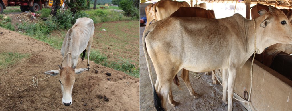 On the trip back, Vishwa called ahead to have ample water available for the cows. It was after 7pm and dark when they got there. It took almost an hour to unload the 23 from both lorries. And even in the dark, the young calves found their moms in a few minutes.You'd better believe they were all thirsty and hungry! Vishwa had four caretakers the first night.The Precious Ones had been thru difficult circumstances. They were given dry grass, water and rice bran before being settled in. The following morning, oil cakes were added, and a second kind of rice bran. On the following day, fresh green grass was added. (Because of the drought, Vishwa couldn’t get fresh grass, locally.) Om Namah Shivaya.