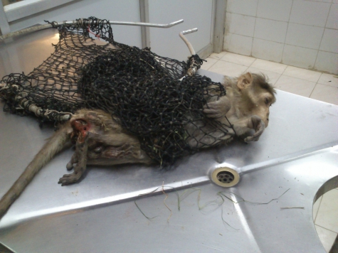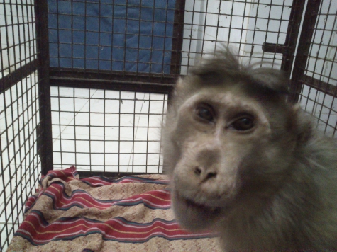 Made physically comfortable by Dr.Raja’s magic. Starvation had taken its toll. Organs too badly damaged. Given two weeks to last. After two days put into large cage in the clinic. Chants playing. Interested in watching the clinic happenings.