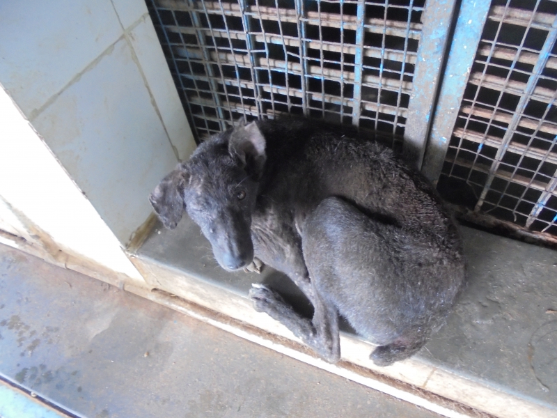 Dr. Raja operated the next day. The photo below is post op, and he’s unhappy. His owner’s not there. Outside the purview of the photo, though, “pure Heart” supervisor Raja gave him a lot of cuddling and love.