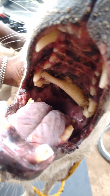 He was an “owner dog”-- about a year old. And the owner brought him to us during the day. Dr. Raja wasn’t here at the time, and Dr.Bharati treated him. (Dr.Bharati’s post grad work, like Dr.Raja’s, is in surgery. But surgery wasn’t needed.) He cleaned the wounds. Gave him a strong painkiller injection which effectively masked the pain, a steroid injection for shock, and thru an i.v. drip—nutrition and anti-biotics.