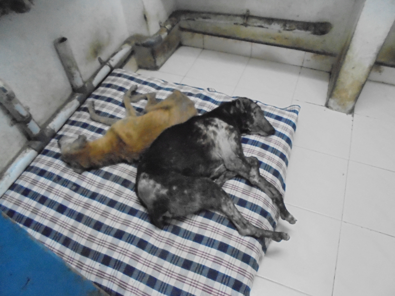 Pandi and Prem went out to get her. She’d been hit by a vehicle the day before. No one knew whether it was a car or two wheeler. She was two years old, her back was broken, and she had four healthy pups. They were two weeks old.
