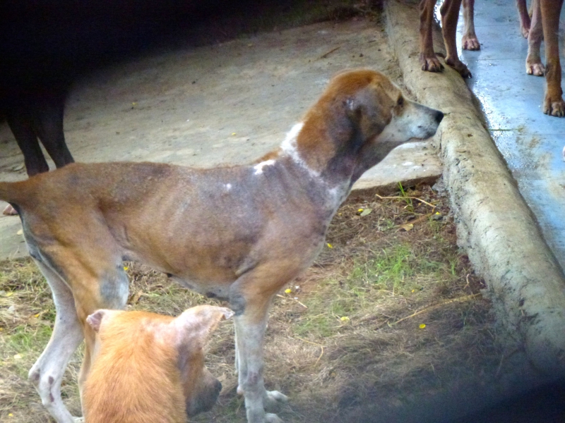Three months later I passed an overweight dog on the examination table right by the front gate. She was lying on her side. She had a heavy brown coat with some white. Dr. Raja was going to give her an anti-rabies injection before she was released. I hadn’t seen her in some time and asked who it was. Ranjita??? I couldn’t believe it and called Dr.Raja over to confirm.